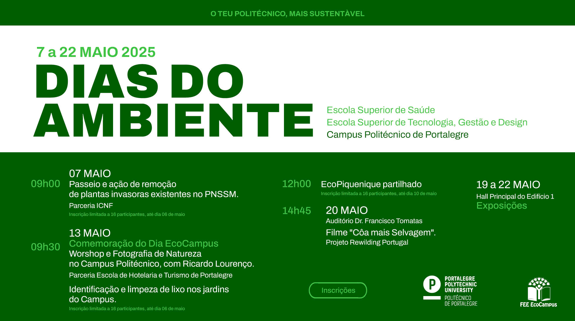 O EcoCampus do Politécnico de Portalegre promove os Dias do Ambiente com um conjunto de atividades que incluem a comemoração do Dia EcoCampus.